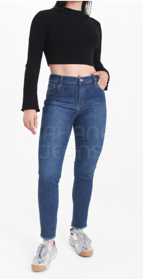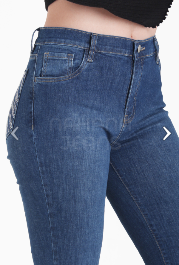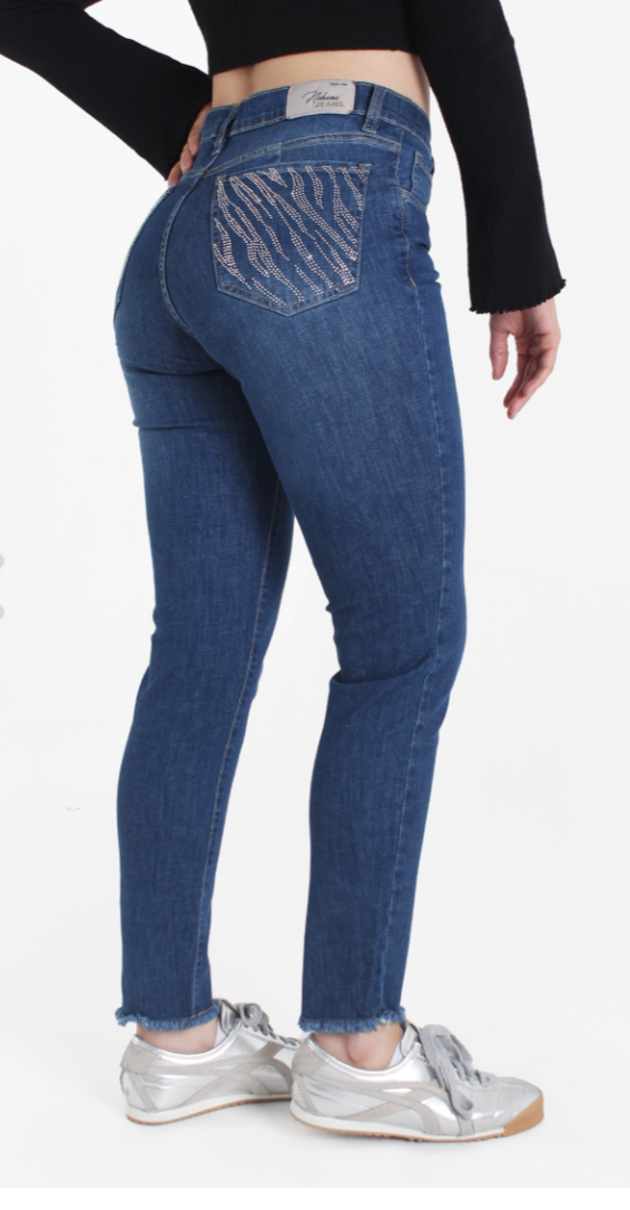 Jean tiro alto elastizado, con brillo en el bolsillo