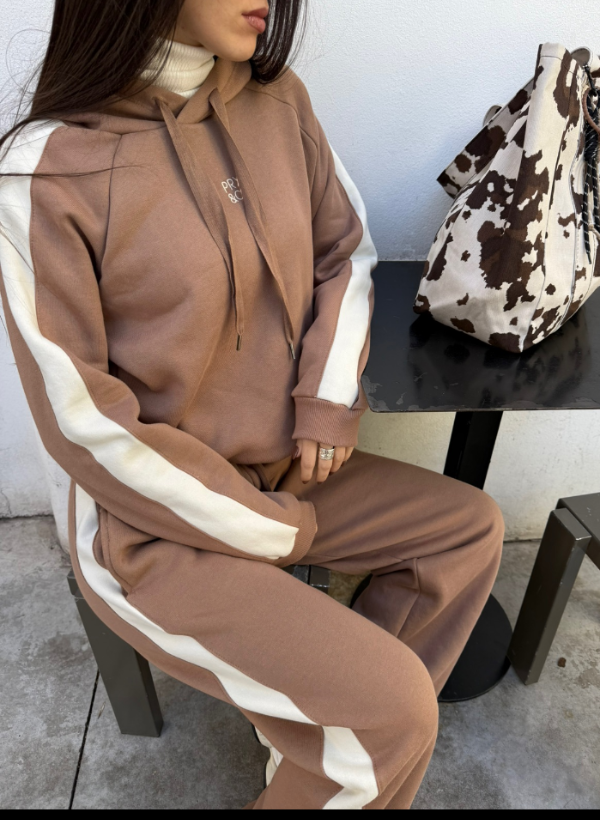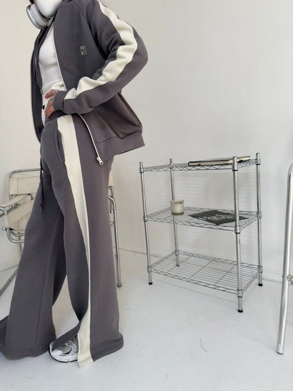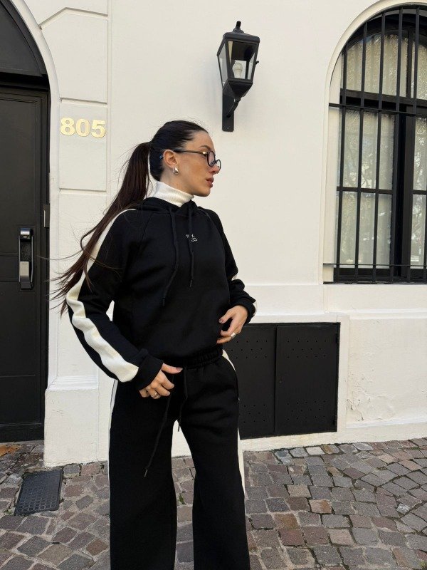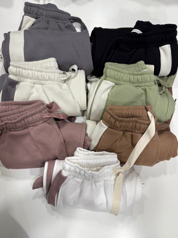 De algodón con friza con una raya al costado, recto y un tajito abajo